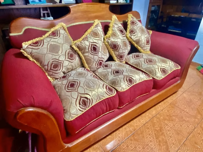Se vende sillón de 3 cuerpos, incluye cojines. Está en muy buen estado, color burdeo y detalles dorados. Se vende solo por renovación.