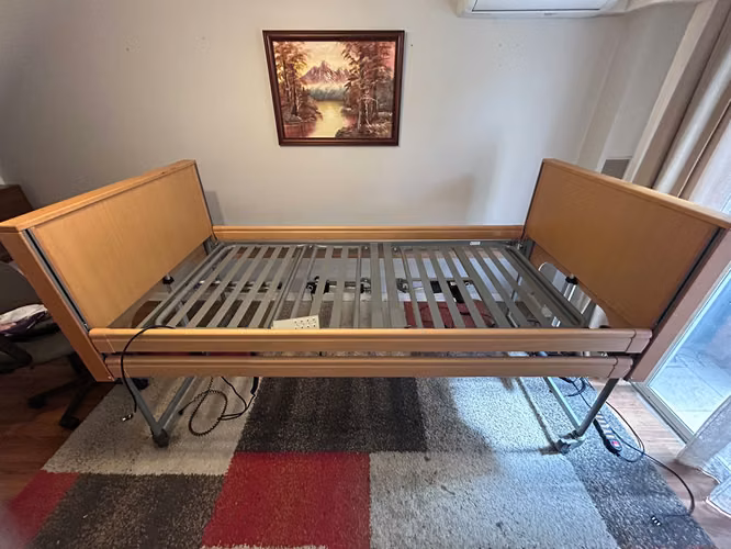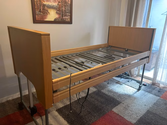Cama medica usada en buenas condiciones se vende por cambio de casa, tiene detalles en espaldar y ruedas.