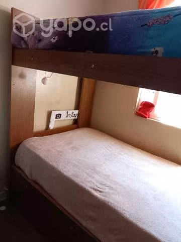 Tiene escalera incorporada, son 3 camas de una plaza (uno es cama nido), se vende sin colchones.