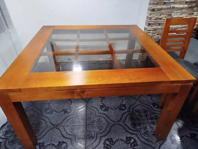 Vendo juego de comedor buen estado como se ve en las fotos, medidas de la mesa son 1.40 x 1.40 y de alto son 100 cms, con sus 8 sillas