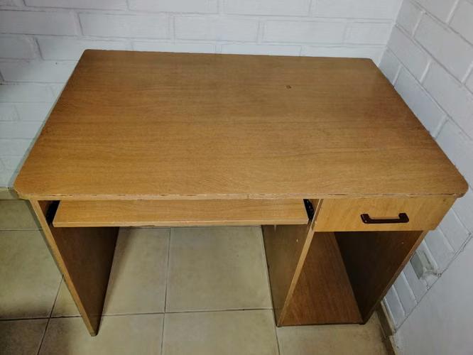 Se vende escritorio pc + silla usado en buen estado, firme y con gran espacio, cuenta con un cajón y bandeja para el teclado, los rieles de ambos en excelente estado; silla con respaldo, regulable en altura. Tiene algunos detalles, un piquete en la madera, el cajón tiene una mancha en su interior, que se aprecia en las fotos. Sus medidas son: - Altura: 73 cm - Ancho: 102 cm - Profundidad: 70 cm Retiro en mi domicilio cerca de metro Elisa Correa.