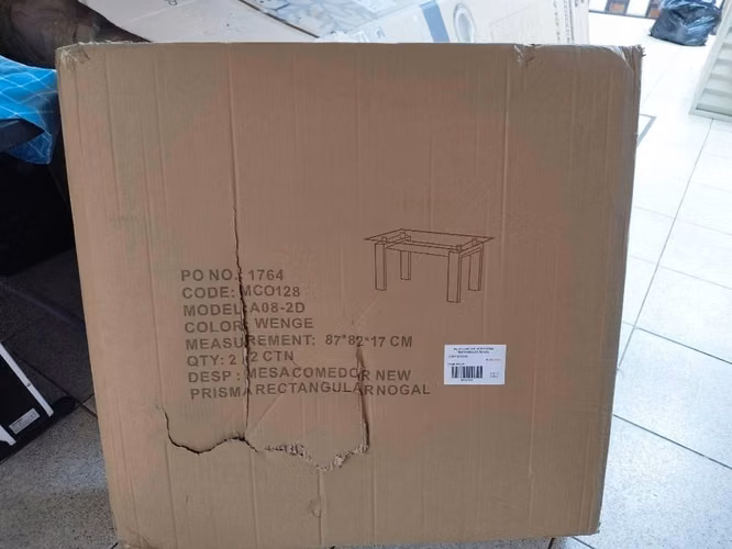 nuevo en su embalaje original, mesa de vidrio patas de madera, sillas de tela, todo nuevo!