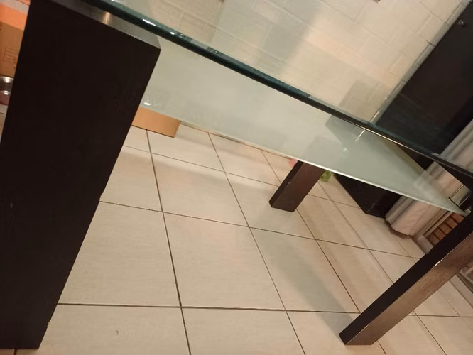 Mesa de doble vidrio, para comedor de 6 personas usado.