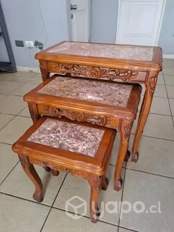 - ProvidenciaConjunto mesas de centro laterales talladas, con vidrio sobre la cubierta.