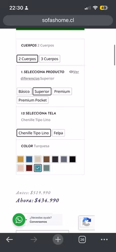 - Las Condes2 sillones individuales y sofa de 3 cuerpos de tela