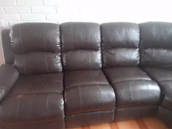 Se vende sofa de cuero de 6 piezas en forma L (redondeado). Costados tipo Berger, manual, armable.
