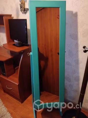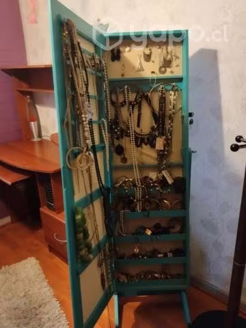 VENDO JOYERO IMPECABLE MUY BONITO DE PIE COLOR CELESTE CON ESPEJO USADO