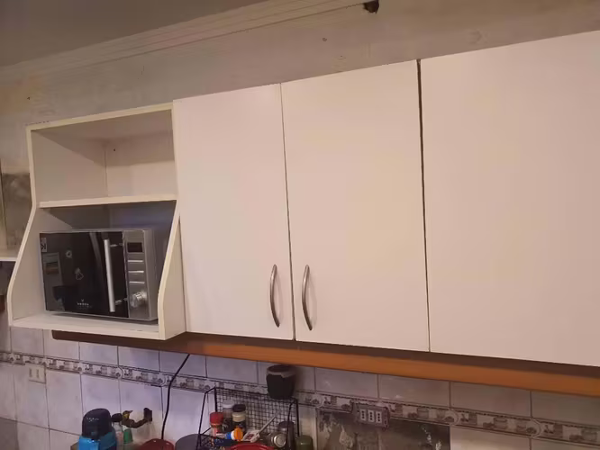 Estoy vendiendo los muebles de cocina por renovación. Los muebles estan en buen estado, el único detalle son los laterales del mueble de abajo, que por el uso están desgastado. Las medidas son: