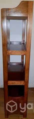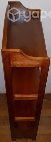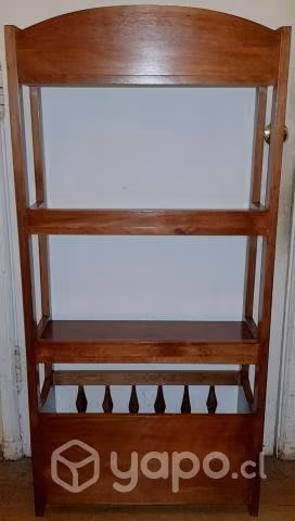 Librero revistero de estilo Estantería, el cual posee 4 repisas; siendo la última de abajo donde se pueden poner las revistas y la de arriba, posee 3 esquinas de madera redondeada. Con 4 palos de madera que le dan figura al mueble.