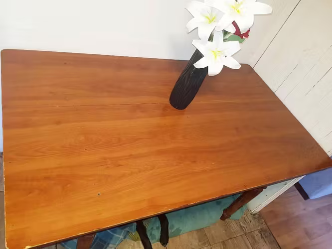 vendo por motivo de viaje la mi mesa de madera para seis puestos entrego en mi domicilio en quinta normal si quieren por la compra de la misma regalo una mesita alta que tengo