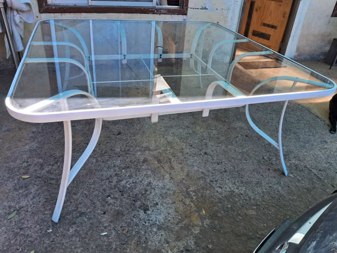 EXCELENTE MESA CUBIERTA DE VIDRIO. 170 X 170M CMTS.