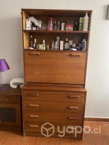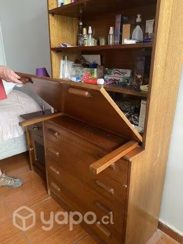 mueble para dormitorio que sirve como comida y estante, puerta se abre transformandose en mesa, con cajoneras para mayor almacenamiento