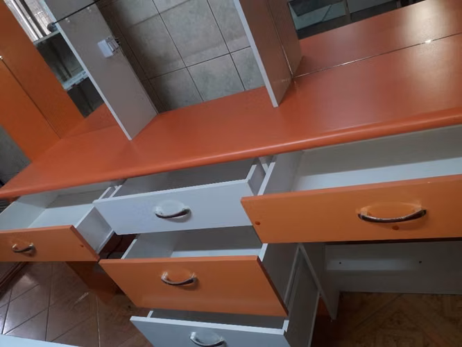 Vendo mueble de peluqueria casi nuevo, sin uso, elegante y muy hermoso, mide 1.90 cms de largo, 1.70 cms de alto y 45 cms de ancho.posee 2 instalaciones de electricidad. Es desmontable en 2 partes, posee iluminacion doble y 3 enchufes en su parte inferior. 2 espejos y cajones amplios para guardar materiales..