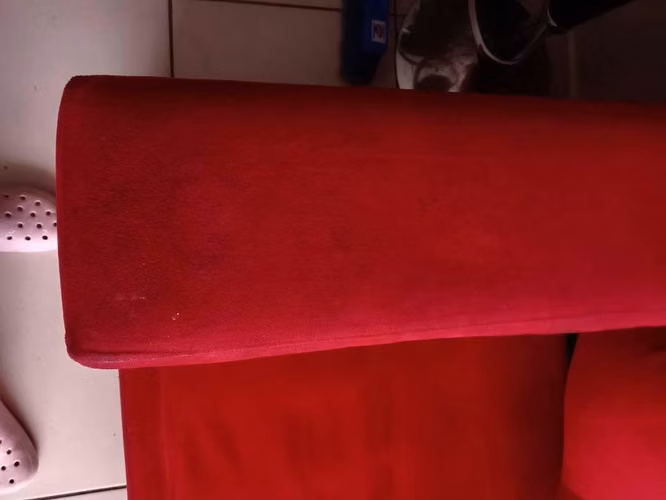 Sillón de felpa rojo italiano mide 180x90 tiene detalles de uso se puede lavar o limpiar con liador de tapiz es ponga en uso se puede ver sin compromiso