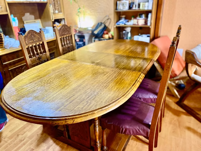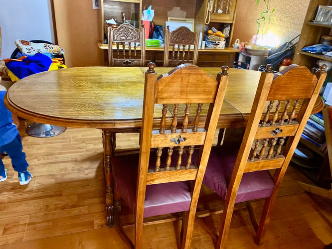 Vendo comedor con 4 sillas, mesa de extiende y caben 8 sillas, totalmente restaurado, 100% madera Eucaliptus.