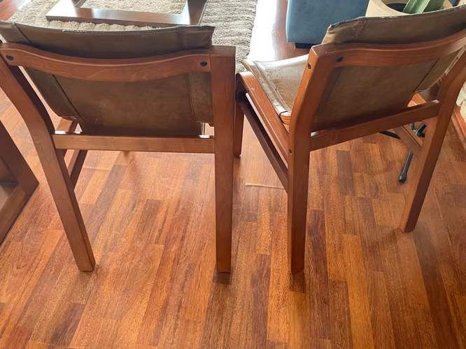 en venta solo 2 sillas color cafe originales de tienda CM&D, material de madera y cuero, en perfecto estado.