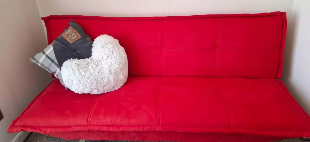 Hermoso futon color rojo. Excelente estado. Muy poco uso. Prácticamente nuevo.