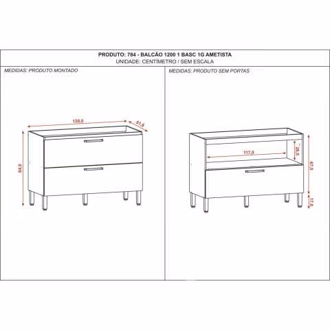 Características Cocina hecha 100% MDP 15 mm certificado FSC, acabado pintura UV, 4 puertas de madera vertical, 2 puertas horizontales, 1 cajón grande, bisagras y correderas telescópicas metálicas, tiradores y patas plásticas