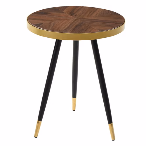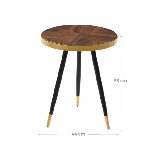 Mesa lateral, de la línea Blizzard, de estructura de metal negro con detalles dorados y cubierta de MDF terminación madera. Su diseño minimalista con toques en dorado y detalles en la cubierta lo convertirán en tu nuevo mueble favorito, con un diseño simple súper elegante, ideal para brindar un soporte extra en tu sala.