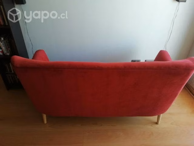 Se vende sofá 2 cuerpos estilo retro color terracota (aunque dependiendo de la luz puede parecer más rojo).