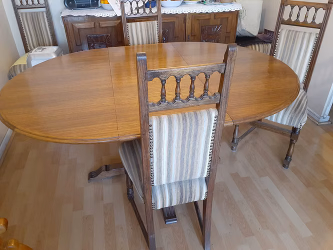 Vendo comedor estilo quiteño en excelente estado, 6 silla con impecable tapiz y mesa para 8 personas, de muy buena madera, firmes y resistentes, incorpora un bifet para guardar vajilla, manteles, copas y servicio. Precio conversable.