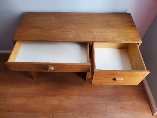 Escritorio de madera nativa en buen estado con 3 cajones y 1 de ellos con 2 llaves incluidas.