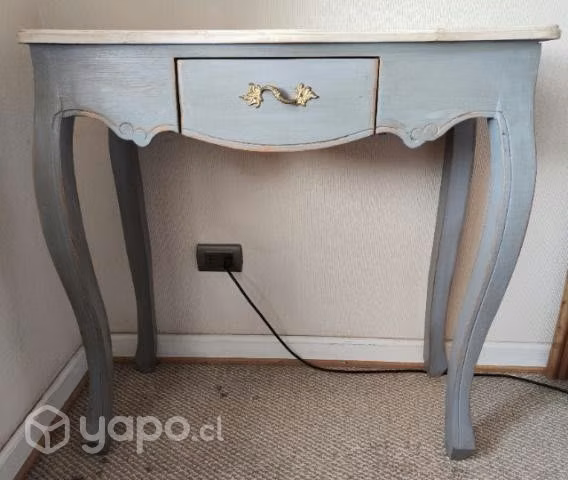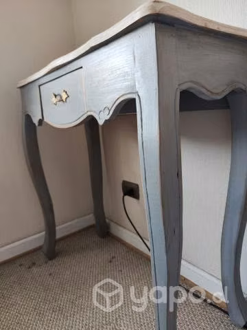 Arrimo con decapado gris y blanco. Un cajon con preciosa manilla dorada. Detalle color rosa en la superficie que se ve en las fotos. Medidas: 80 cm largo, 36 cm profundidad, 79 cm alto.