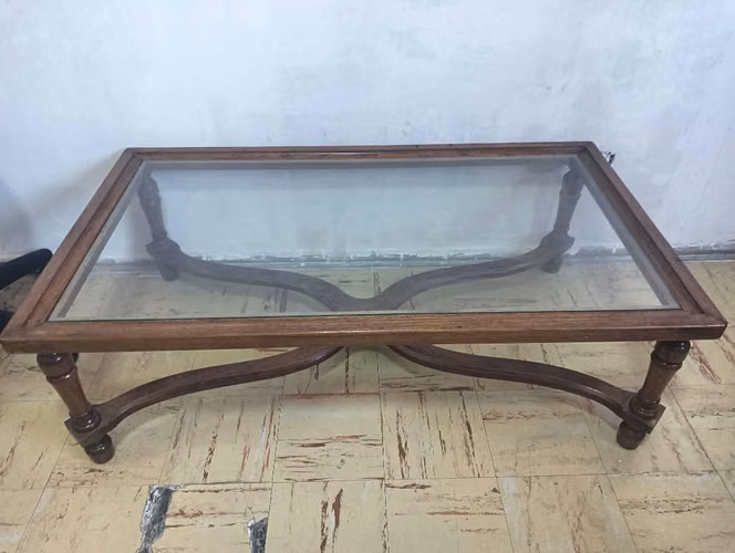 Mesa de centro madera jacaranda y vidrio, excelente calidad.