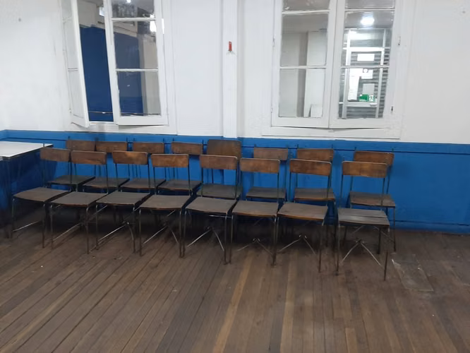 10 mesas y 16 sillas.