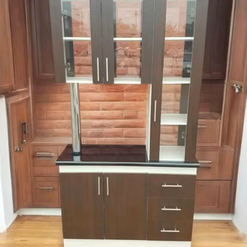 Mueble de cocina Americano con vitrina.