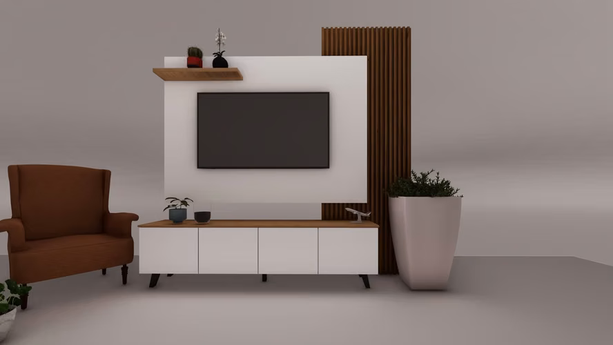 - AricaRack / Mueble TV color madera con puertas y ruedas – Viña del Mar