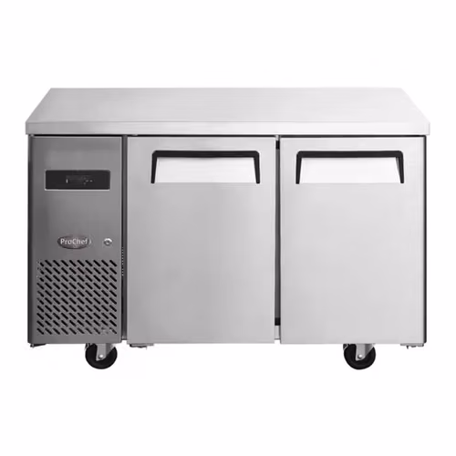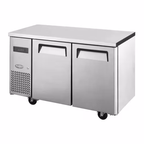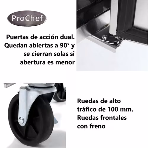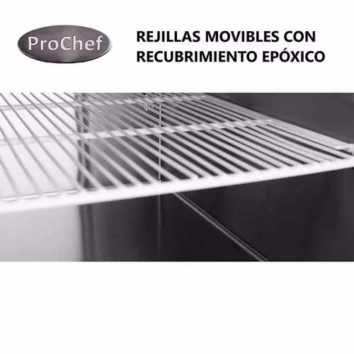 Los mesones refrigerados ProChef son equipos muy prácticos en cocinas pequeñas, en que los espacios deben ser aprovechados al máximo, ya que pueden ser utilizados como mesa de trabajo por su cubierta de acero inoxidable AISI-304 y simultáneamente como refrigerador.