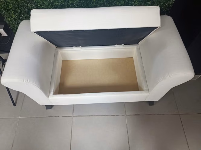 Se vende sillón banquete decorativo color crema sin uso, con baúl incluido de bisagras: