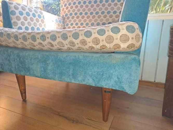 Se venden sillones antiguos, el celeste 30 mil tiene una funda café,la Poltrona café 15000 recibo solo llamadas