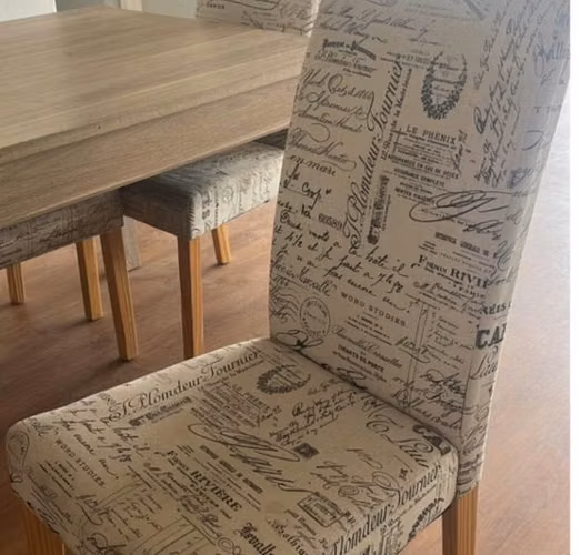 Vendo mesa de comedor y 6 sillas respaldo alto tapizadas .