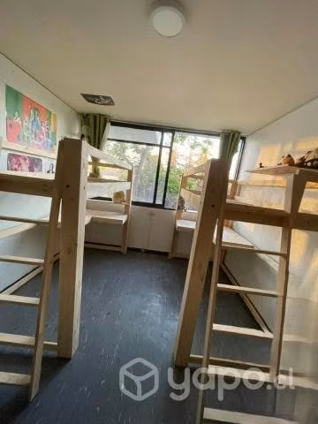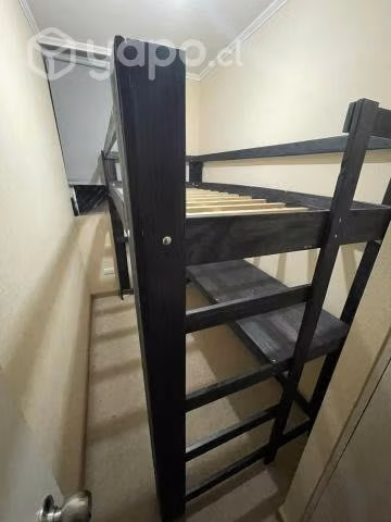 Cama alta con escritorio de una (1) plaza o plaza y media (1,1/2), de pino cepillado, con diferentes tonalidades.