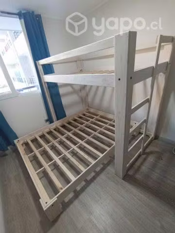 Camarote de una (1) plaza o de plaza y media (1,1/2) arriba y de dos (2) plaza abajo, fabricada en pino cepillado con diferentes tonalidades.