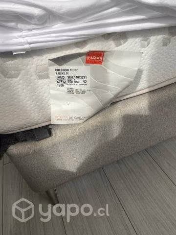 Cama Box Spring Rosen King 180x200 Mobo, respaldo y veladores Issey tela y madera. Muy poco uso, seminuevos. Super rebajados!!! Se incluye envío a mayoría de comunas RM.