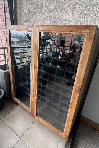 Vendo Cava de madera Ciprés de Cordillera, para 100 vinos, ruedas, puerta de madera y vidrio.
