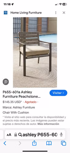 Marco de aluminio libre de óxido, con respaldo de madera sintética (respaldos con detalles) y cojines originales de color beige.