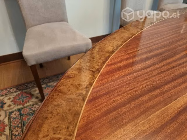 Preciosa mesa de comedor ovalada, lingue, raíz y marquetería de madera de naranjo.180 x 120. Excelente estado.