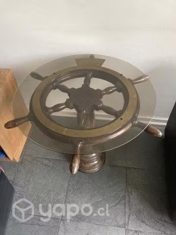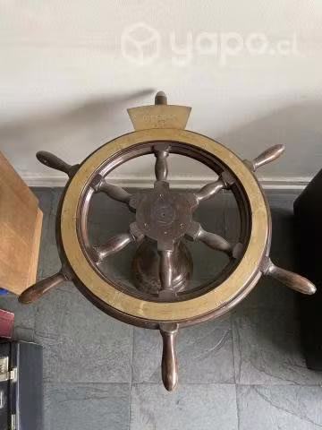 Linda mesa de rueda de gobierno del año 1975 entregada al director de la Escuela Naval de esa época con grabados en placas de los oficiales navales.