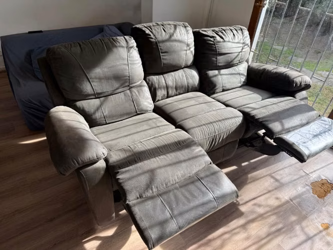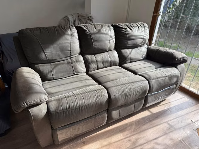 Cómodo sofá Rosen 3 asientos reclinable color café en buen estado, entrego con kit de limpieza de la misma marca.